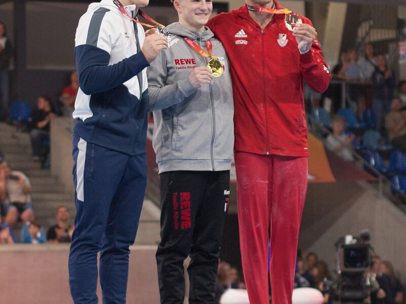Den Auftakt machten am 31. Juli die Mehrkämpfe der Männer in der JOYNEXT Arena. Gleich zum Start setzten Alexander Kunz und Valentin Zapf ein Ausrufezeichen. Mit einer beeindruckenden Leistung sicherte sich Alexander Kunz mit 77,650 Punkten die Silbermedaille. Direkt dahinter erturnte sich Valentin Zapf mit 73,850 Punkten den dritten Platz.