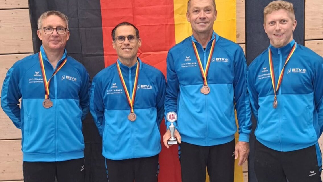 Genauso erfolgreich präsentierte sich das AK-60+-Team: Auch hier konnte verletzungsbedingt nur eine Rumpfmannschaft antreten. Michael Krocka (TSV Weilheim), Stefan Schmitz (TSV Weilheim), Volker Hinze (TSV Sonthofen) und Stefan Mantel (TSV Unterpfaffenhofen-Germering) überzeugten mit geschlossener Leistung und belegten hinter Thüringen und Westfalen Rang drei.